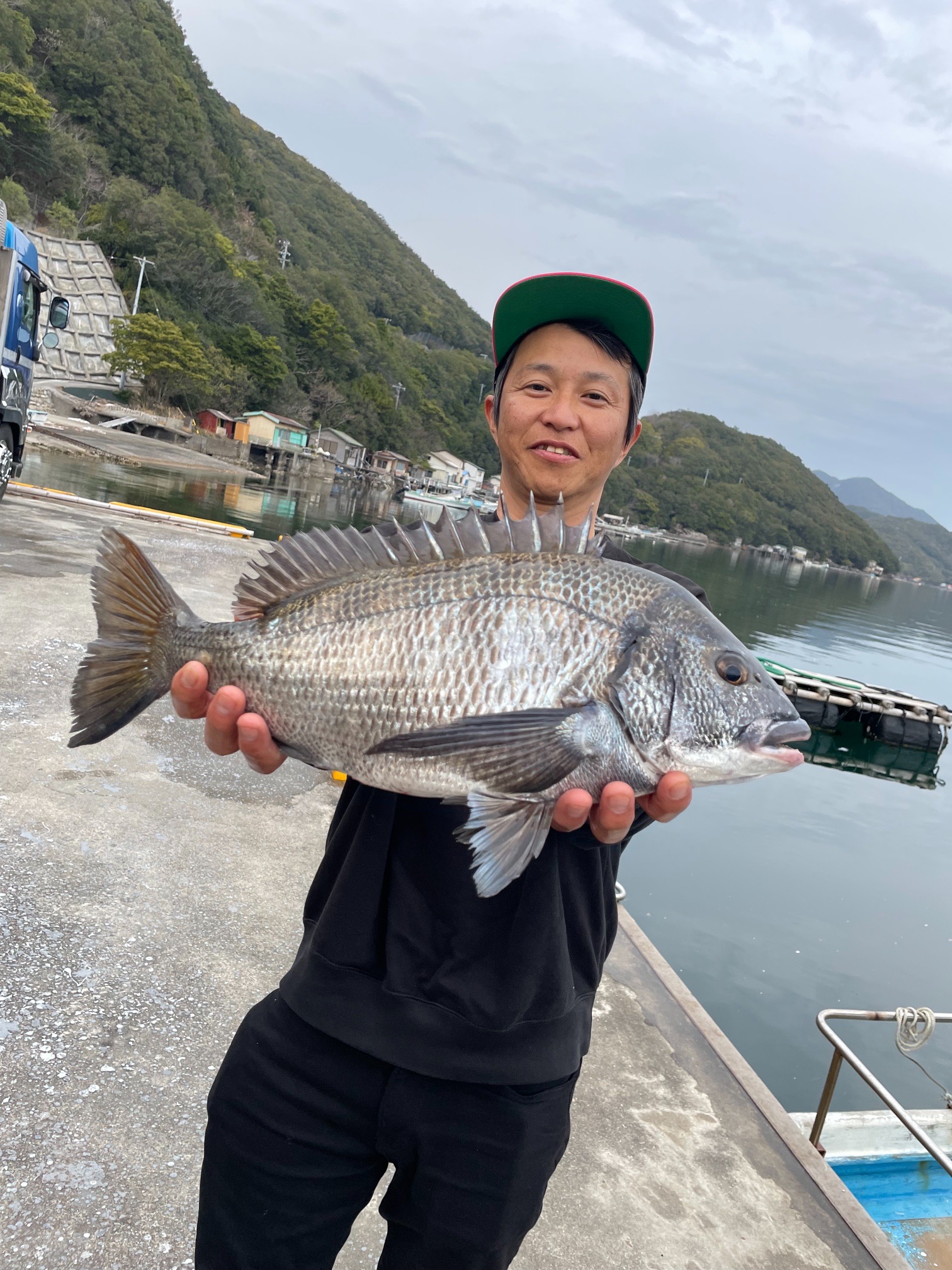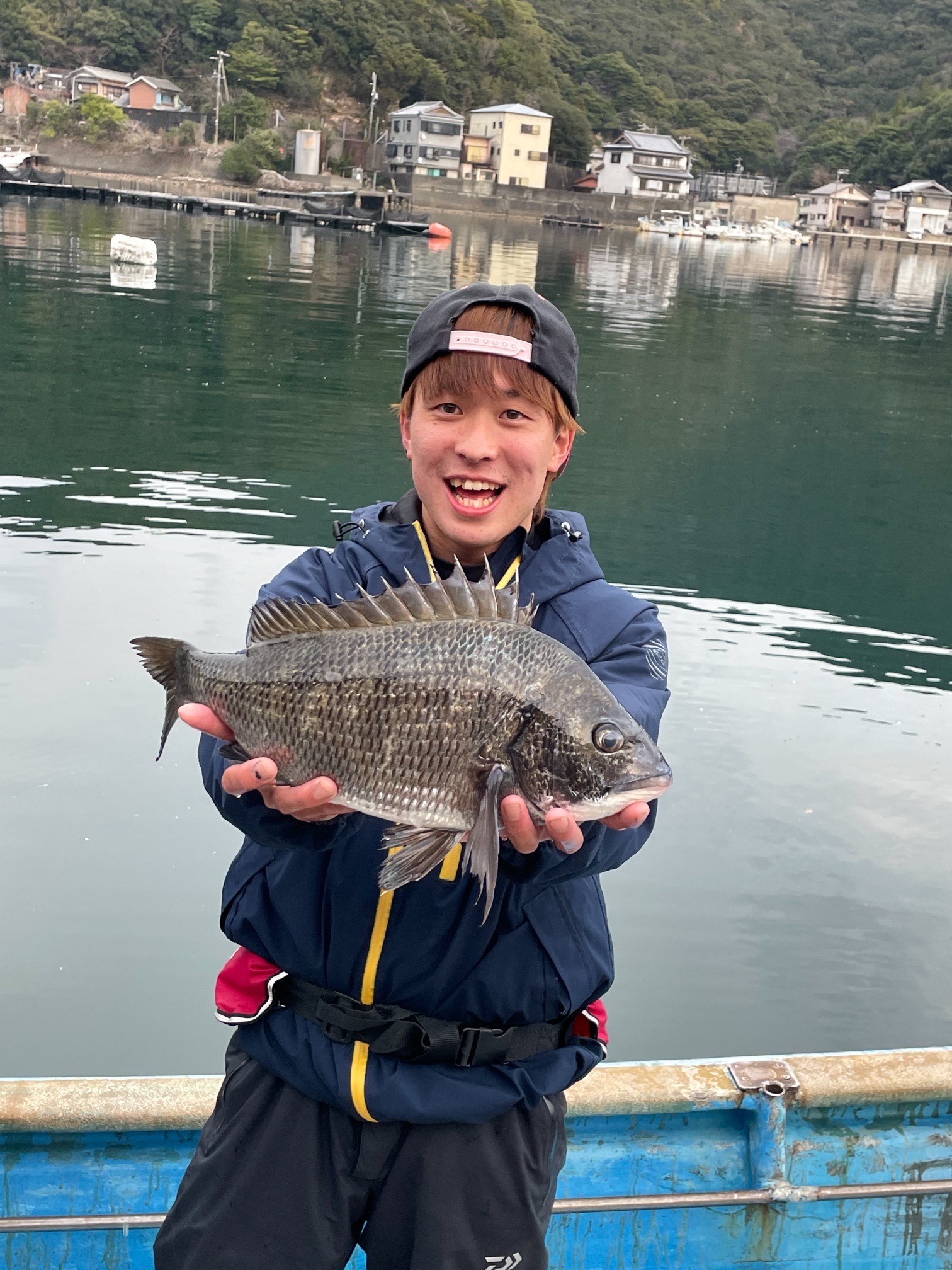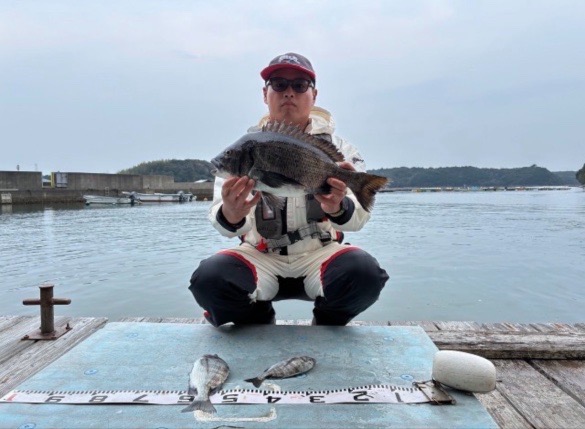 有岡渡船さんでの大橋くんの釣果 全体的に餌取り少なく渋い状況 チヌ48センチ頭に3尾 エサはカメジャコ 広角釣法 |