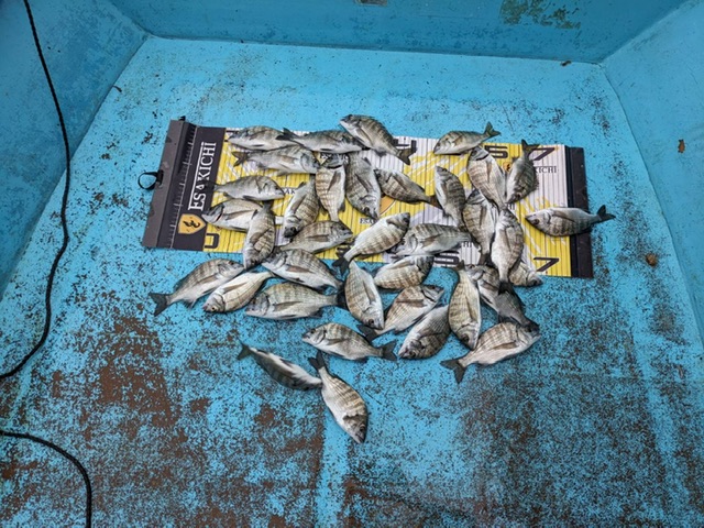 西川さんが三ヶ所はヒロ丸さんに釣行 悪天候の中、サナギ、コーンで 数釣りを満喫! 午後からは風強くなり15時早上がり 餌取りの活性も高く楽しめたようです。 |