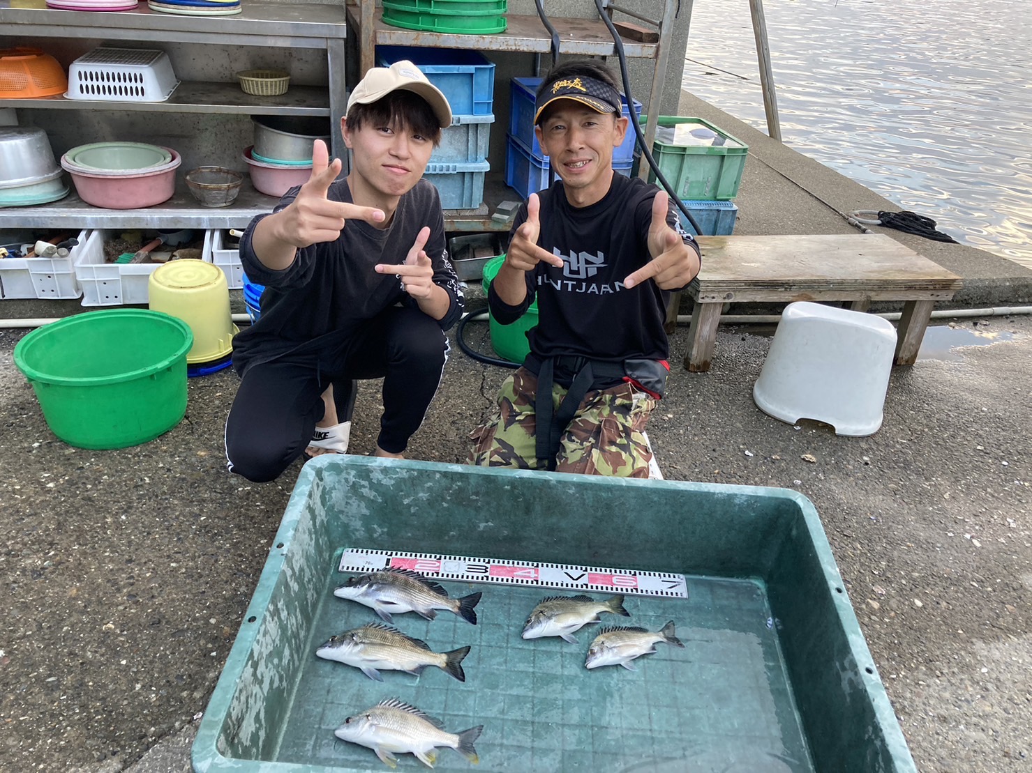 ともやまFPさんに 釣果はこの時期には厳しい30センチ頭に5尾 エサ取りの活性も低く 秋のメインエサ取り、アジ、アイゴが居ない状況 底から少し浮いた所にミニヘダイ 他のエサ取りはいないと稀にみるおかしな海中でした。 納竿間際に潮がよれはじめ ボケの落し込みで4連発 チヌ釣りの状況は良くなかったですが 井上さん、ウキ、ハズキちゃんと ワイワイ楽しむことができ満足でした! |