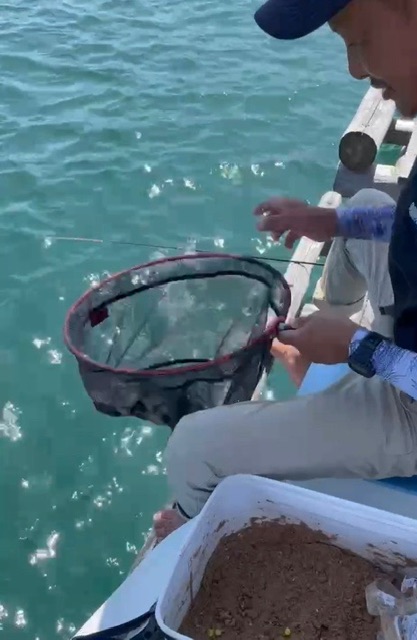 半田くんがゆずととさんに釣行 台風前から絶好調だった阿曽浦 大型+二桁釣果に期待! 朝からサナギ、コーンも残らないほどのエサ取り 10時くらいから釣果変わる予定! |